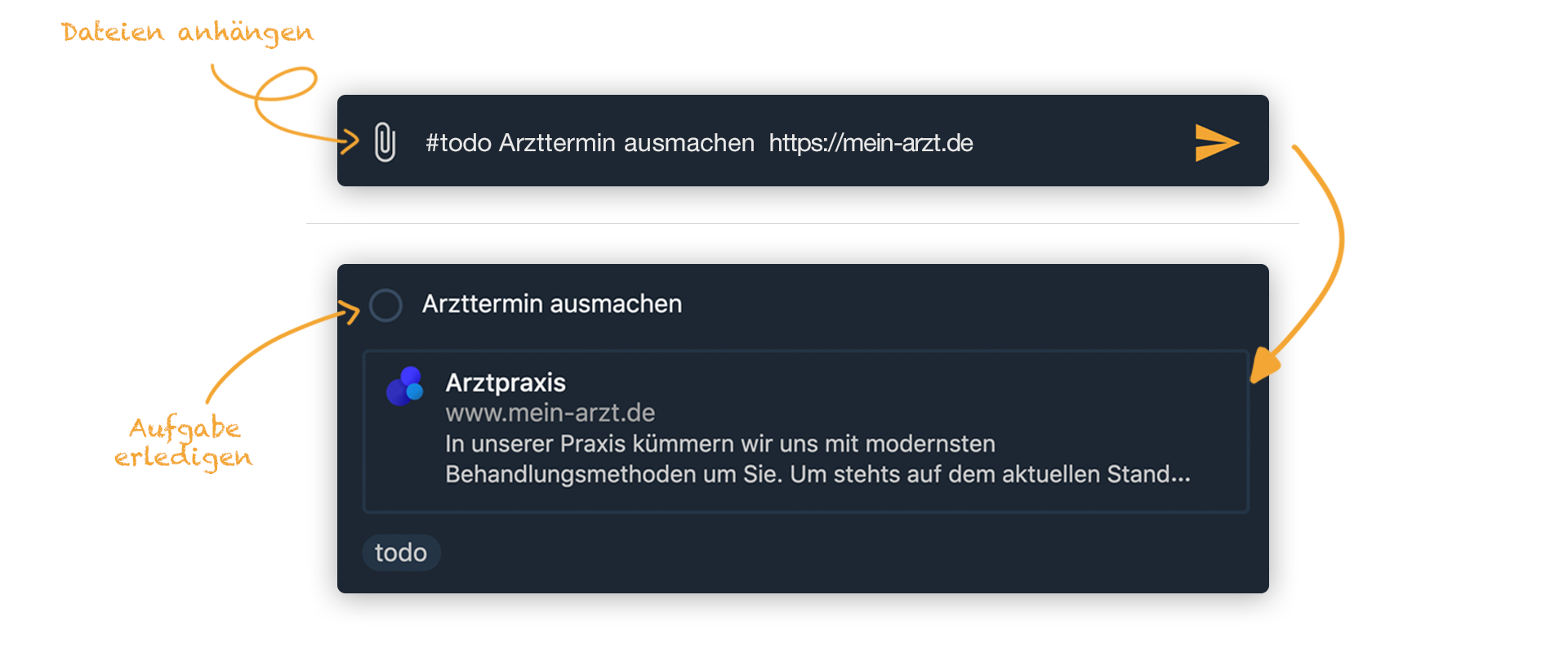 Beginne mit deinem Tag, deiner Notiz, deinem Link - völlig egal! Tagstack legt alles an den richtigen Platz.